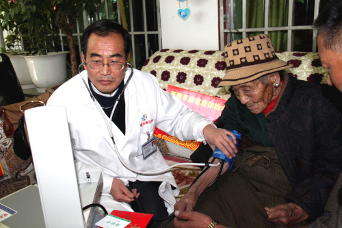 西藏高寒缺氧,自然環(huán)境惡劣,60多年前,這里的人均壽命才35.5歲。然而60多年后,2012年拉薩市所有七縣一區(qū)百歲老人就有16位,這些走過(guò)兩個(gè)世紀(jì)的百歲老人,見(jiàn)證了西藏翻天覆地的滄桑巨變,他們是全社會(huì)的寶貴財(cái)富,更是西藏從貧窮走向繁榮富強(qiáng)的親歷者、見(jiàn)證者。在全國(guó)人民喜迎黨的十八大勝利召開(kāi)之際,西藏阜康(國(guó)際)體檢中心與拉薩市民政局老齡辦組織發(fā)起了“關(guān)愛(ài)百歲老人行動(dòng)”。我們歷時(shí)16天,里程2000多公里,尋訪了拉薩七縣一區(qū)十一位百歲老人,我們不僅為每位老人送上了精心準(zhǔn)備的三千元現(xiàn)金、五千元健康體檢卡、一個(gè)便攜式氧氣瓶、一個(gè)便攜式血壓儀,還為他們送上了免費(fèi)義診和相關(guān)藥品。王斌董事長(zhǎng)參加了此項(xiàng)活動(dòng)的啟動(dòng)儀式,嘎布院長(zhǎng)、張德才院長(zhǎng)親自帶隊(duì)為每一位百歲老人做了常規(guī)的身體檢查,并送上了藥品和祝福。