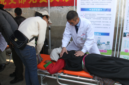 2016年4月29日上午,我院組織起一支6人醫(yī)療小隊,由黨支部書記徐勝柱主任領隊,其中有內(nèi)科吾金頓珠主任、針灸推拿科張洪主任,一同前往拉薩市城關區(qū)團結新村為廣大社區(qū)居民免費義診、送醫(yī)送藥。