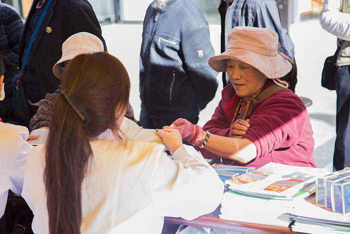 在活動(dòng)期間,前來(lái)阜康醫(yī)藥義診宣傳點(diǎn)的藏族同胞及社會(huì)群眾紛紛表達(dá)了自己對(duì)阜康醫(yī)藥全體員工的感謝,一位年齡較大的藏族老伯前來(lái)測(cè)量完血壓并咨詢了一些自己身體健康方面的問(wèn)題之后,更是再三對(duì)阜康醫(yī)藥的醫(yī)護(hù)人員表達(dá)了謝意,并且毫不吝嗇贊美之情地對(duì)我們豎起了大拇指!西藏自治區(qū)德吉副主席等幾位領(lǐng)導(dǎo)在本次活動(dòng)巡查工作中,于阜康醫(yī)藥免費(fèi)義診宣傳點(diǎn)與我院醫(yī)護(hù)人員等進(jìn)行了交流,并再次表達(dá)了對(duì)阜康醫(yī)藥長(zhǎng)期以來(lái)積極參與各項(xiàng)活動(dòng)、傾情奉獻(xiàn)社會(huì)民族、熱心回饋西藏百姓的誠(chéng)摯的感謝。