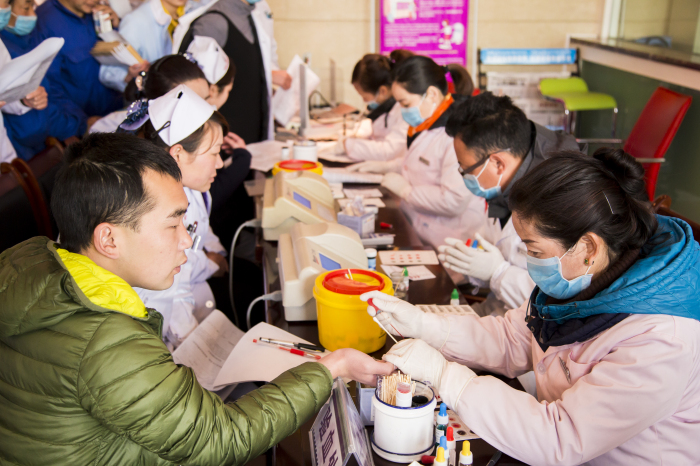 3月,春節(jié)和藏歷新年剛剛過去,自治區(qū)血液中心便出現(xiàn)用血緊張的狀況,血源告急。為了緩解我區(qū)用血緊張的局面,3月8日在阜康集團王斌董事長的號召下,我公司組織117人(包括4名院外人士)參加無償獻血活動。