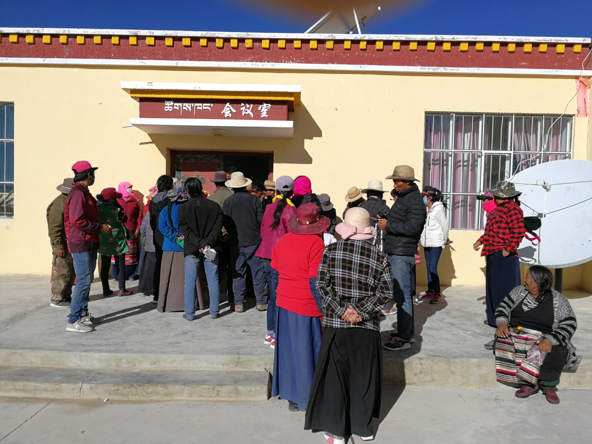●達(dá)革吉縣 · 革吉鎮(zhèn) · 會(huì)議室外等候篩查的群眾