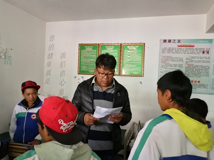 嘎瑪石珍,初二二班班主任,她所在的班級(jí)有42名學(xué)生,三分之二的學(xué)生為住校生,今天有39名學(xué)生到校進(jìn)行體檢篩查。據(jù)嘎瑪石珍老師介紹,學(xué)校很重視學(xué)生的衛(wèi)生宣傳教育工作,班主任在每周班會(huì)上都會(huì)檢查學(xué)生的手、腳、脖子以及衣服的衛(wèi)生情況,住校的學(xué)生會(huì)在老師的監(jiān)督下每周洗澡、洗衣服,學(xué)校政教處、團(tuán)委也會(huì)不定期抽查。但是另一部分走讀生卻不太好監(jiān)督,雖然經(jīng)常教育他們,但仍有一部分同學(xué)不講衛(wèi)生,不按時(shí)洗澡,體味刺鼻。