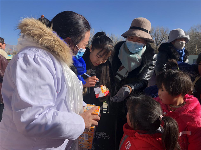 捐贈儀式結(jié)束后,阜康醫(yī)院義診隊為60多名學(xué)生免費就診,發(fā)放藥品。義診隊醫(yī)生細心為孩子們看病,并耐心講解藥品的服用方法及注意事項,老師仔細的在每個孩子的藥盒上注明孩子姓名及用法。