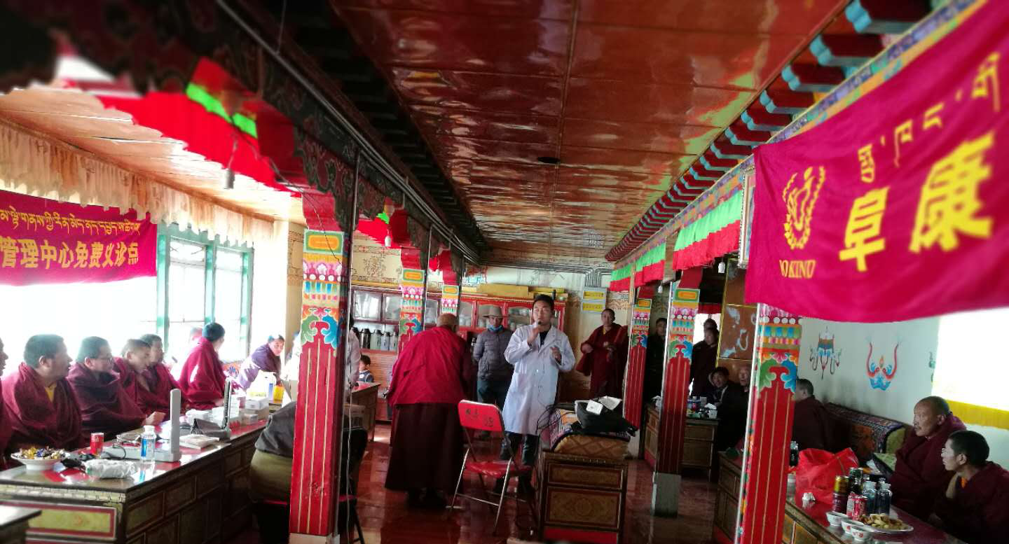在寺廟佛學(xué)院院長(zhǎng)占堆喇嘛的安排下,在一個(gè)寬敞的會(huì)議室里展開了義診活動(dòng),附近的老百姓聽說(shuō)醫(yī)療義診隊(duì)的到來(lái),也陸陸續(xù)續(xù)地從家里過(guò)來(lái)。