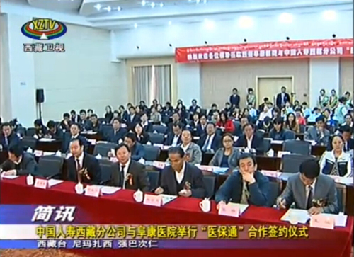 西藏阜康醫(yī)院與中國人壽保險(xiǎn)股份有限公司西藏自治區(qū)分公司近日舉行了“醫(yī)保通”系統(tǒng)服務(wù)合作簽約儀式。