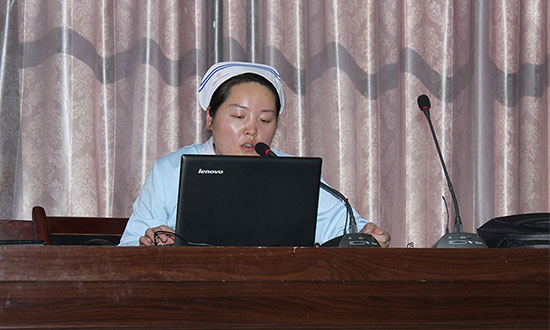 2015年6月10日,由護士長王青青主講的基礎護理服務工作規(guī)范培訓講座在阜康醫(yī)院婦產(chǎn)兒童分院進行,在講座中,護士長王青青主要強調(diào)各科室針對不同疾病的患者應該如何進行護理服務,以及在護理的過程中應該注意哪些細節(jié),比如如何協(xié)助活動不便的患者翻身或者下床,怎樣為患者清理面部、口腔、會陰等部位,留置管怎樣護理等。講座現(xiàn)場,不少培訓的護理人員也向王青青護士長反應了自己在臨床工作中遇到的一些問題,王青青護士長一個一個耐心的向大家解答。