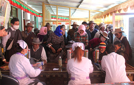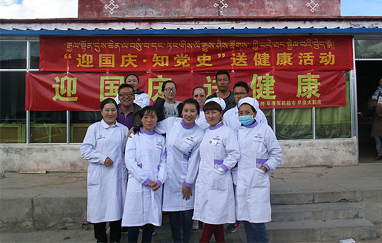 9月25日,西藏阜康醫(yī)藥公司的八名優(yōu)秀醫(yī)護人員從拉薩出發(fā),在經(jīng)歷了4個小時的路程后到達郭尼村,義診組成員忍受高寒缺氧所帶來的不適,在第一時間開始了“問診和送醫(yī)送藥活動”,義診組根據(jù)村群眾黨員不同的看病需求,帶去了多種藥品免費發(fā)給病情需要的牧民。在義診現(xiàn)場,醫(yī)務(wù)人員認(rèn)真進行檢查,耐心解答他們提出的問題,為他們提出具體的治療方案;醫(yī)護人員為當(dāng)?shù)啬撩駛儨y量血壓,并免費發(fā)放了家庭常備藥品的各種宣傳資料。讓當(dāng)?shù)啬撩癯浞窒硎艿椒奖憧旖莸娜嬷艿降尼t(yī)療服務(wù),為牧民帶去健康的同時也帶去了關(guān)愛。