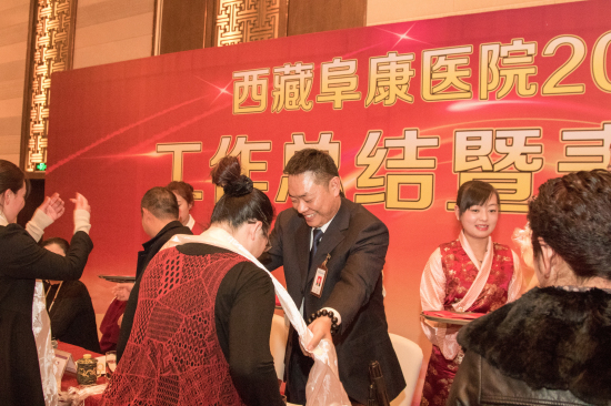 2016年1月19日下午3點(diǎn)半,西藏阜康醫(yī)院2015年度總結(jié)暨表彰大會(huì)在香格里拉大酒店隆重舉行,本次2015年度總結(jié)表彰大會(huì)由敖德秀副院長(zhǎng)主持,王斌董事長(zhǎng)、陳彬總經(jīng)理、張德才總院長(zhǎng)、劉連福副院長(zhǎng)、張治副院長(zhǎng)、李君副院長(zhǎng)、何靜院長(zhǎng)助理等各位院領(lǐng)導(dǎo)及三家醫(yī)院、體檢中心全體員工參加本次會(huì)議。