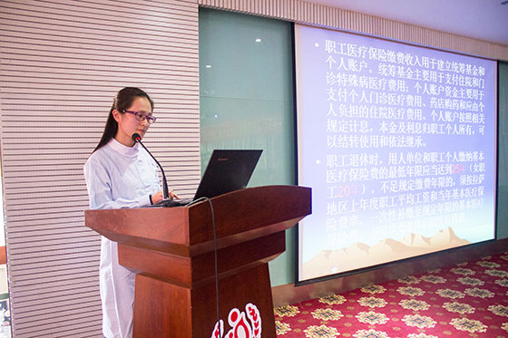 在隨后的醫(yī)保知識(shí)培訓(xùn)中,醫(yī)保辦張燕平同志為新入職的臨床工作人員仔細(xì)講解了包括基本醫(yī)療保險(xiǎn)、門診特殊病、大額醫(yī)療費(fèi)商業(yè)補(bǔ)充保險(xiǎn)、拉薩市醫(yī)療救助“一站式”即時(shí)結(jié)算服務(wù)、新農(nóng)合等有關(guān)醫(yī)保方面的專業(yè)知識(shí),以方便臨床醫(yī)務(wù)工作者在以后的各項(xiàng)實(shí)際工作中能與醫(yī)保進(jìn)行很好的銜接,從而提高醫(yī)院醫(yī)?;鸢踩褂寐剩糁漆t(yī)療費(fèi)用的不合理增長,維護(hù)參保人員的合法權(quán)益,促進(jìn)各項(xiàng)醫(yī)療保險(xiǎn)制度更加穩(wěn)妥、有序地發(fā)展。