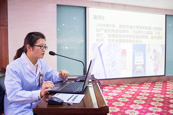 王茹主任隨后就院感定義、院感途徑、院感要求、院感控制、洗手消毒指征與八步洗手法、發(fā)生職業(yè)暴力如何正確應(yīng)對、醫(yī)療垃圾分類、如何應(yīng)對傳染病以及相關(guān)法律法規(guī)等多個(gè)要點(diǎn)做了詳細(xì)講解,以讓我們新入職的醫(yī)、技、護(hù)工作人員在以后的日常工作中,能夠更加規(guī)范的完成各自的相關(guān)工作、更加注重與醫(yī)院感染相關(guān)的各項(xiàng)細(xì)節(jié),從而程度地避免我院發(fā)生醫(yī)院感染事件的可能性。