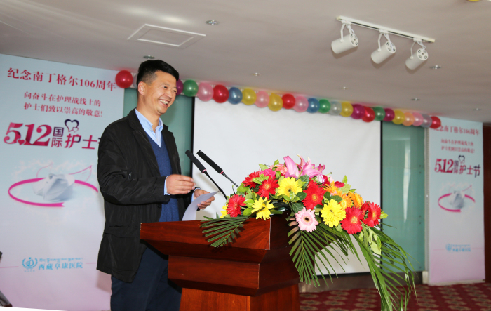 王斌董事長致辭,他代表西藏阜康醫(yī)療股份有限公司全體股東向工作在一線的護理工作者表示深深的謝意,同時感謝一直支持他們的家人和親友,王斌董事長表示他一定會竭盡所能帶領醫(yī)院領導班子為我院護士們創(chuàng)造一個更好的工作環(huán)境和更加滿意的福利待遇。