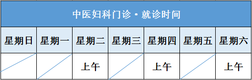 目前,中醫(yī)婦科門診時間為每周二上午,周四上午,周六上午。