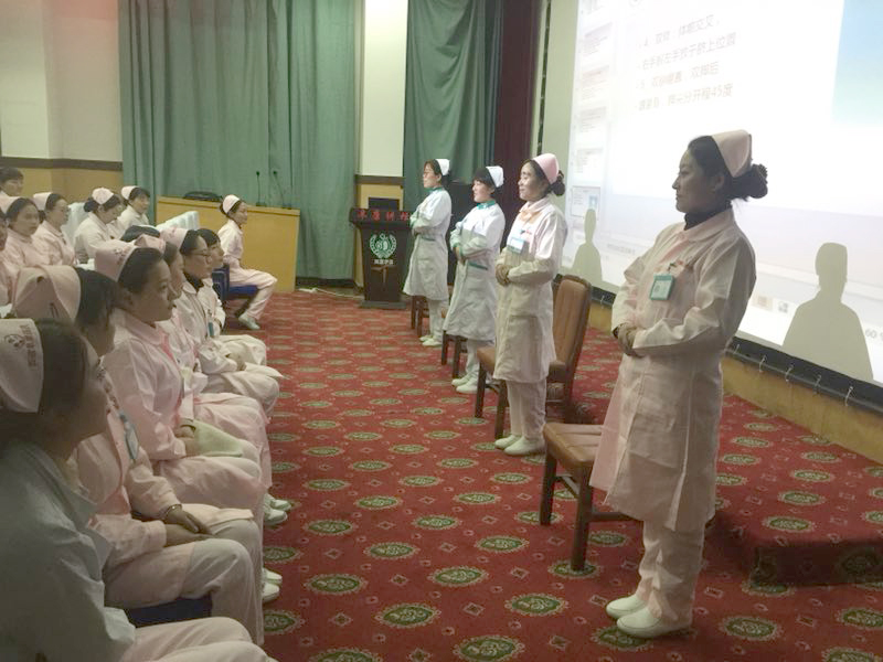 2018年4月9日下午7點,西藏阜康醫(yī)院、西藏阜康醫(yī)院婦產(chǎn)兒童分院、西藏阜康醫(yī)院心腦血管分院三家醫(yī)院護理部組織開展了導(dǎo)醫(yī)服務(wù)禮儀培訓,培訓內(nèi)容涵蓋了導(dǎo)醫(yī)的儀容儀表、站姿、坐姿、行姿、手勢引領(lǐng)病人、電話禮儀、文明用語等,參加培訓的導(dǎo)醫(yī)人數(shù)為34人。