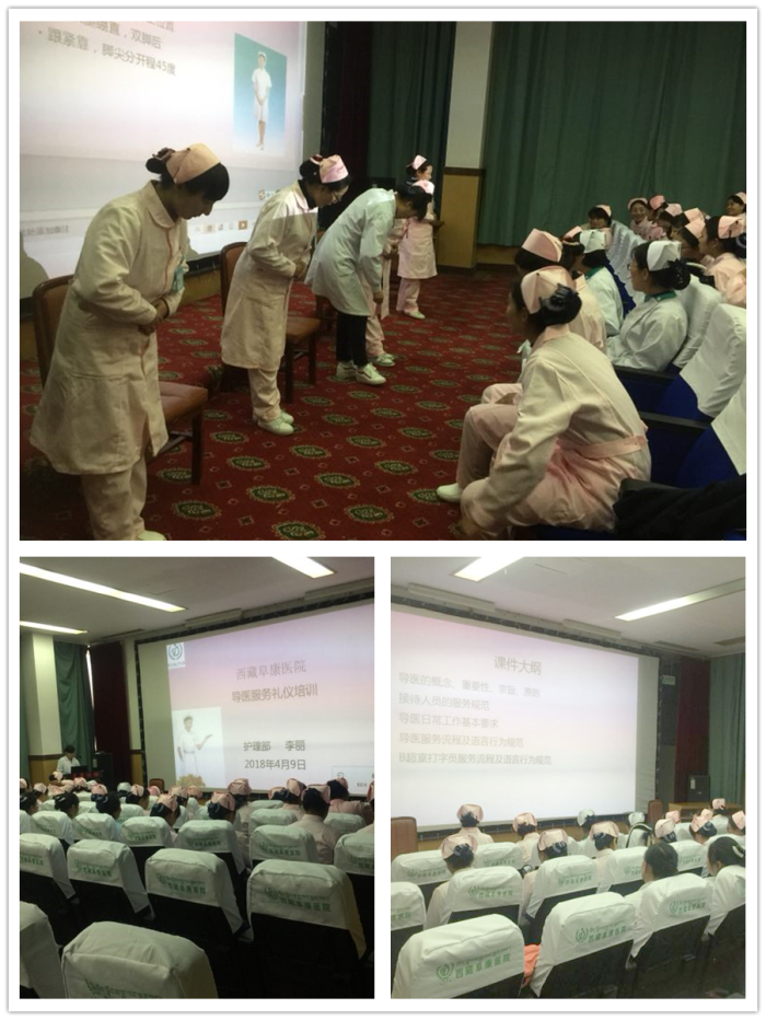 【概要】:2018年4月9日,西藏阜康醫(yī)院、西藏阜康醫(yī)院婦產(chǎn)兒童分院、西藏阜康醫(yī)院心腦血管分院三家醫(yī)院護理部組織開展了導(dǎo)醫(yī)服務(wù)禮儀培訓,培訓由護理部主任李麗主講并進行了現(xiàn)場指導(dǎo)與考核,旨在規(guī)范服務(wù)禮儀,提高服務(wù)質(zhì)量。