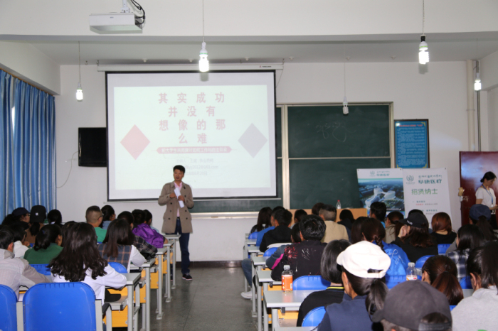 王斌以“其實成功并沒有想象的那么難”為主題,和藏大醫(yī)學(xué)院應(yīng)屆畢業(yè)生共同探討了如何工作與自主創(chuàng)業(yè),闡述了自己在拉薩21年來的創(chuàng)業(yè)經(jīng)歷,為在座大學(xué)生分享了“用別人的平臺入世、找到志同道合的合伙人、選準(zhǔn)行業(yè)項目堅持到底”的創(chuàng)業(yè)思想,提出了“單位上班也可以成就自己”的理念,并對“如何度過美好的一生”作出了詮釋。之后,王斌對在座的應(yīng)屆大學(xué)生說道:“不管世界如何變化,一定要相信這個世界上還存在真善美!”