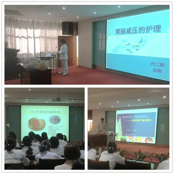 明玲護(hù)士長在此次授課中分享了本科室遇到的壓力性損傷患者的護(hù)理,重點(diǎn)講到“壓力性損傷敷料的使用方法”:各期壓力性損傷敷料的選擇,敷料使用前的皮膚護(hù)理方法、使用中敷料的觀察、使用后創(chuàng)面的效果評價。護(hù)士王麗娟、護(hù)士長贠萌分別對“腸胃減壓的護(hù)理”、“簡易呼吸氣囊的使用”進(jìn)行了生動的講解。為鞏固本次培訓(xùn)知識,本次培訓(xùn)內(nèi)容將納入本月底理論考核。
