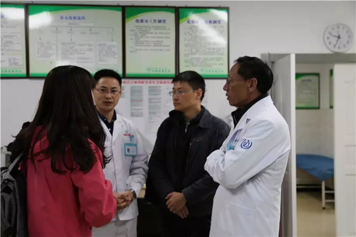 在西藏阜康醫(yī)院綜合院區(qū)急診科,余海放主任詳細了解科室的設(shè)備、人員配備等情況,肯定了我院在醫(yī)療設(shè)備投入方面的成績。在阜康醫(yī)院配劑室,余海放主任贊賞說:“阜康醫(yī)院的配劑室利用互聯(lián)網(wǎng)傳送藥方,不但節(jié)省了患者的時間,方便了患者,更體現(xiàn)了阜康醫(yī)院的專業(yè)化,現(xiàn)代化!”