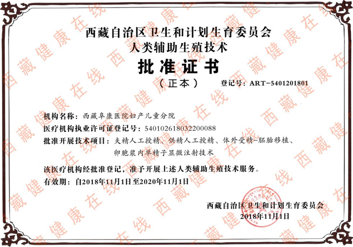 近日,西藏自治區(qū)衛(wèi)生和計劃生育委員會正式下發(fā)文件,確認由西藏阜康醫(yī)院婦產兒童分院生殖醫(yī)學中心開展的常規(guī)體外受精-胚胎移植(IVF-ET)技術、卵胞漿內單精子顯微注射(ICSI)技術、夫精人工授精(AIH)及供精人工授精(AID)技術,四項人類輔助生殖技術校驗合格,同意該中心作為西藏目前開展人類輔助生殖技術中心繼續(xù)開展相關技術的單位。