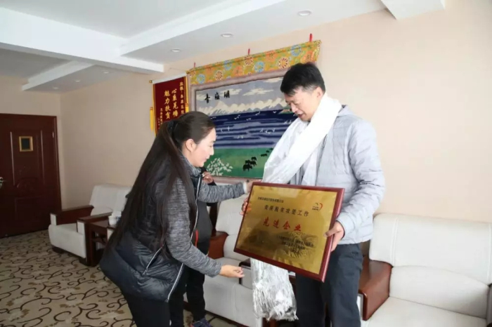 隨后,才旦卓嘎向阜康醫(yī)療股份有限公司黨委書記、董事長王斌頒發(fā)“脫貧攻堅工作先進企業(yè)”匾牌。