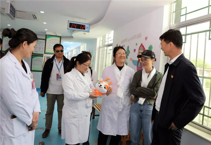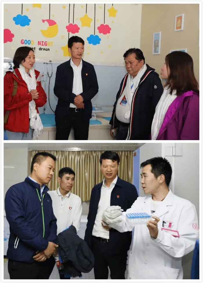 西藏阜康醫(yī)療股份有限公司黨委書記、董事長王斌陪同參觀阜康婦產(chǎn)兒童醫(yī)院院區(qū)