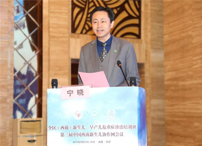 西藏阜康醫(yī)療股份有限公司總裁、西藏阜康醫(yī)院院長(zhǎng)寧曉代表承辦方對(duì)中華醫(yī)學(xué)會(huì)兒科分會(huì)新生兒學(xué)組、中國(guó)西南新生兒協(xié)作網(wǎng)、重慶醫(yī)科大學(xué)附屬兒童醫(yī)院新生兒中心和西藏醫(yī)學(xué)會(huì)兒科專委會(huì)的信任和支持表示謝意,并預(yù)祝會(huì)議取得圓滿成功;