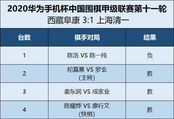 最終,西藏阜康隊(duì)獲得三場(chǎng)勝利,西藏阜康3:1勝上海清一。