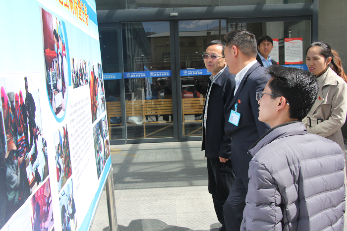 調(diào)研組領(lǐng)導(dǎo)觀看我院阿里包蟲病篩查工作匯報展覽板