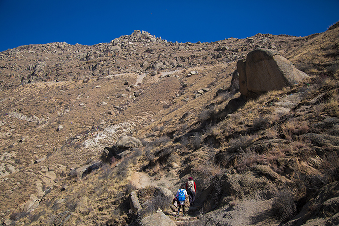 按照既定路線,我們沿著色拉寺的轉(zhuǎn)經(jīng)道到達(dá)了后山,開始向我們的第一個(gè)目標(biāo)——色拉烏茲進(jìn)發(fā)。