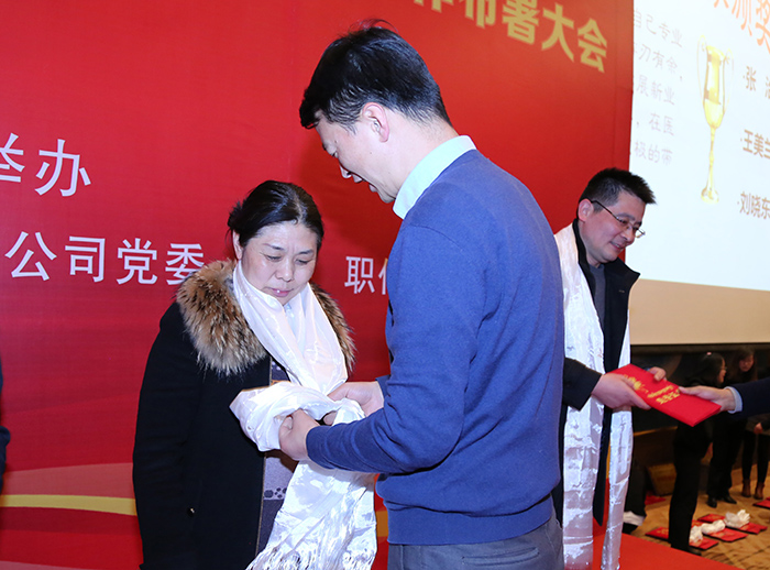 王斌董事長(zhǎng)、劉瀟瀟總經(jīng)理、陳彬總經(jīng)理、敖德秀總院長(zhǎng)等院領(lǐng)導(dǎo)分別為他們頒發(fā)了獎(jiǎng)?wù)录蔼?jiǎng)金。張德才院長(zhǎng)發(fā)言,祝賀獲獎(jiǎng)科室及個(gè)人,希望其他科室和員工以他們?yōu)榘駱?,在?lái)年的工作中努力學(xué)習(xí)、奮發(fā)自強(qiáng),為醫(yī)院的發(fā)展貢獻(xiàn)自己的一份力量。隨后,先進(jìn)科室、優(yōu)秀管理人員、優(yōu)秀員工代表進(jìn)行了生動(dòng)的發(fā)言和表態(tài)。