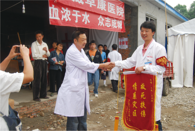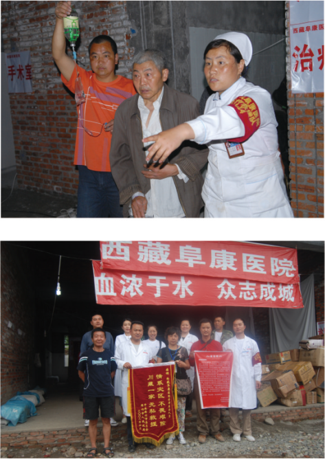 綿竹市災(zāi)區(qū)人民口口相傳,說九龍鎮(zhèn)來了西藏的醫(yī)生,給他們帶來了最好的醫(yī)護人員和治療設(shè)備。這樣的信息一傳十、十傳百,到后來,九龍鎮(zhèn)方圓數(shù)十公里的村民都趕過來看病治療。