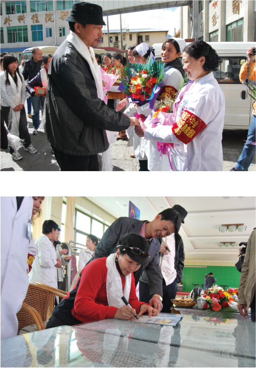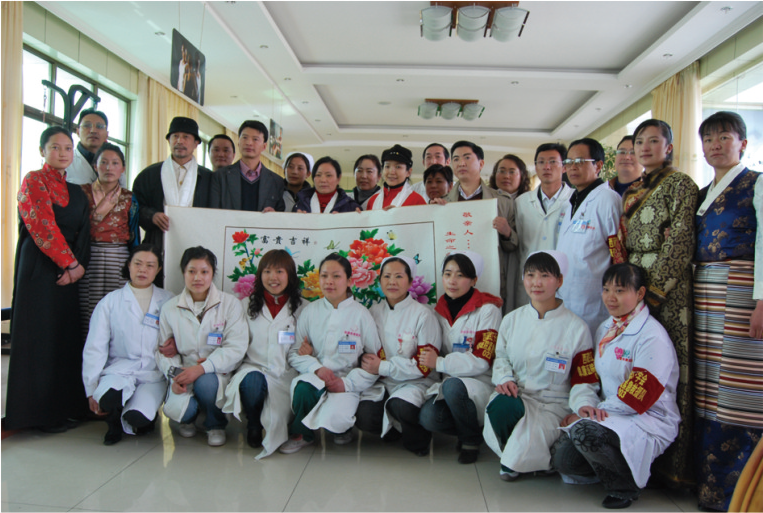 此次的西藏之行,田啟蘭專門代表綿竹人民準(zhǔn)備了一副《富貴吉祥》手工刺繡圖,表達(dá)災(zāi)區(qū)群眾的感激之情。這幅刺繡是田啟蘭和幾名繡女不分晝夜趕制出的。對于田啟蘭來說,這不僅是一次感恩之旅,更是去探望自己“家人”的溫馨之旅。 而孫海英呂麗萍夫婦了解到,阜康醫(yī)院醫(yī)療救援隊(duì)醫(yī)療一直在免費(fèi)收治有困難的患者。在探訪時(shí),有一位70多歲的老人就正在接受治療,所有的費(fèi)用都是該公司董事長一個(gè)人承擔(dān)。得知這個(gè)情況后, 孫海英夫婦當(dāng)即掏出自己隨身攜帶的全部3000多元現(xiàn)金捐獻(xiàn)出來。在了解索珍有身孕在身,孫海英夫婦和田啟蘭又一起買了禮物去看望這位白衣天使。