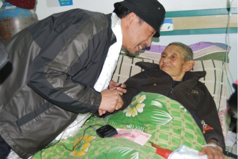 這次感恩之旅最艱難的地方就是大家對西藏高原氣候的極度不適應(yīng)。果然, 到達(dá)了西藏后,孫海英就發(fā)生了嚴(yán)重的高原反應(yīng), 身體虛弱到了極點(diǎn)。同行的工作人員為了防止意外,一度打算取消這次探訪。但孫海英請求大家稍等自己一會。半個(gè)小時(shí)后,經(jīng)過簡單救治以后,盡管他的不適反應(yīng)并沒有完全消除,但孫海英仍然準(zhǔn)時(shí)出現(xiàn)在大家面前。