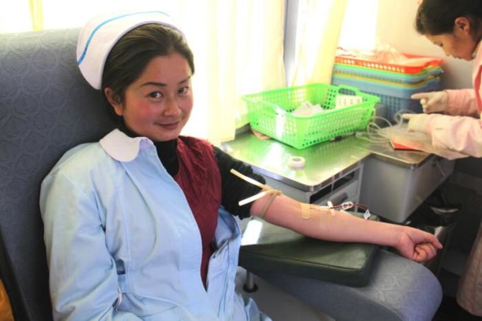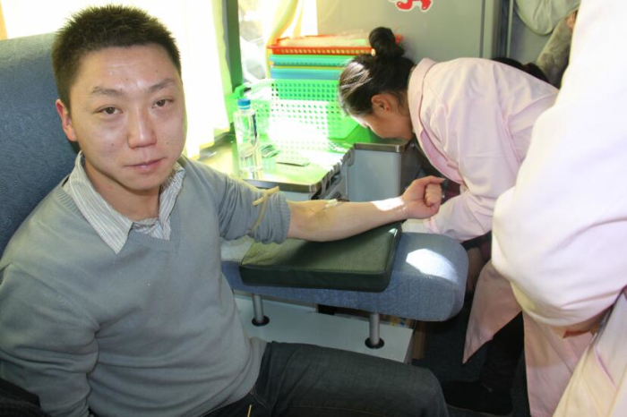 近日拉薩市血庫(kù)全線告急,血庫(kù)面臨血荒的危機(jī)。在得知這一緊急情況后王斌懂事長(zhǎng)、劉瀟瀟總經(jīng)理立即組織阜康員工積極獻(xiàn)血,在阜康各位領(lǐng)導(dǎo)的帶領(lǐng)下,2013年1月30日他們來(lái)到阜康婦產(chǎn)兒童醫(yī)院血液中心采血點(diǎn)義務(wù)獻(xiàn)血。采血現(xiàn)場(chǎng)筆者看到在阜康婦產(chǎn)兒童醫(yī)院呂果梅副院長(zhǎng)和拉薩大藥房何文秀店長(zhǎng)的組織下大家排著整齊長(zhǎng)隊(duì)等待獻(xiàn)血。筆者有幸采訪到了阜康醫(yī)院心腦血管分院內(nèi)科主任于永軍,據(jù)于主任介紹他已是多次參與獻(xiàn)血,阜康的員工都是很無(wú)私的,很多時(shí)候在面臨病人急需輸血而血站又缺血的情況下阜康員工就會(huì)自發(fā)組織在一起去血站為病人獻(xiàn)血,這種情況總是經(jīng)常出現(xiàn)。于主任告訴筆者自己獻(xiàn)血也是想起到一個(gè)帶頭的作用,很多人不愿獻(xiàn)血就是怕對(duì)身體有傷害,醫(yī)生護(hù)士積極獻(xiàn)血能告訴大家適當(dāng)獻(xiàn)血不但對(duì)身體沒(méi)有害處還有利于身體健康。