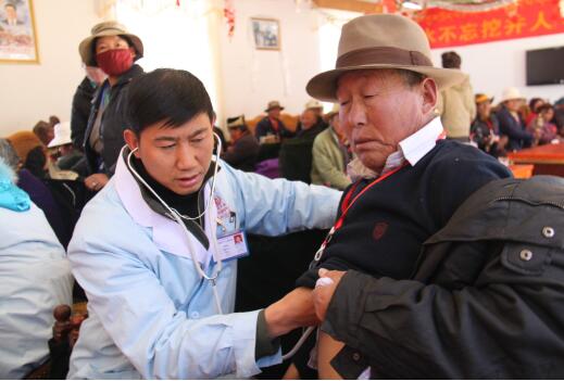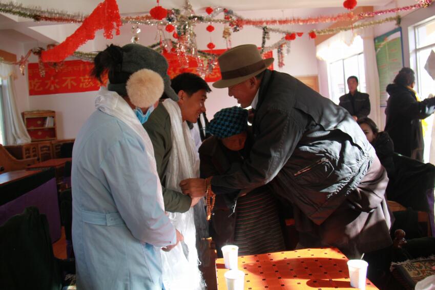 下午,我們又來到墨竹工卡縣扎西崗鄉(xiāng)敬老院,對老人進行義診。當天,我們一共對300位老人進行了免費體檢,發(fā)放了價值10000余元的藥品。