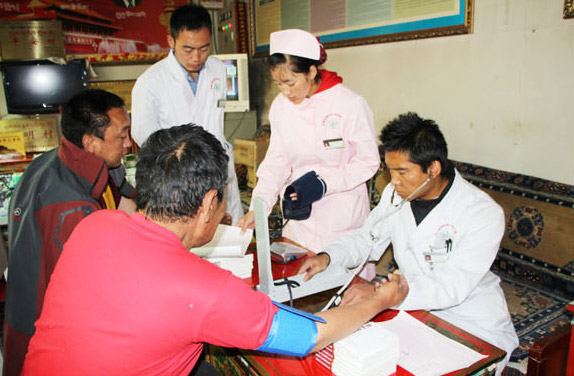 此次活動,阜康國際體檢中心派出四名醫(yī)護人員為當(dāng)雄縣烏瑪塘鄉(xiāng)郭尼村送去價值一萬元的藥品,并對100多名村民進行免費體檢。此次體檢主要包括血壓監(jiān)測、B超、心電圖等各種疾病的臨床檢查。通過檢查,醫(yī)護人員對存在健康問題的群眾做了詳細(xì)的記錄,并根據(jù)體檢結(jié)果提出科學(xué)、合理的建議。在現(xiàn)場,阜康(國際)健康體檢中心的醫(yī)護人員向村民發(fā)送了1000余份健康知識宣傳資料,并對村民的健康咨詢進行解答,向老年人傳授自我保健、延年益壽的健康知識。對于郭尼村村民的身體狀況,醫(yī)生馮志遠(yuǎn)說:“郭尼村村民的病癥與高寒環(huán)境、飲食習(xí)慣有直接關(guān)系。他們病癥主要是:高血壓、冠心病、膽囊炎、脂肪肝及胃炎。所以村民們平時不僅要注意飲食清淡,還要有良好的生活習(xí)慣。