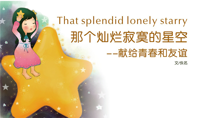 等濃霧散去后,就可以看到最美麗的星空了。”我們是否也能像他們一樣,跳進(jìn)那滿(mǎn)天的星海里,頭枕著星星,卻看見(jiàn)燦爛的陽(yáng)光。我不知道,有陰影的地方,是否必定有光。仰望星空,我還是愿意相信,你或者其他人,曾經(jīng),正在從世界的某個(gè)地方向我走來(lái)。