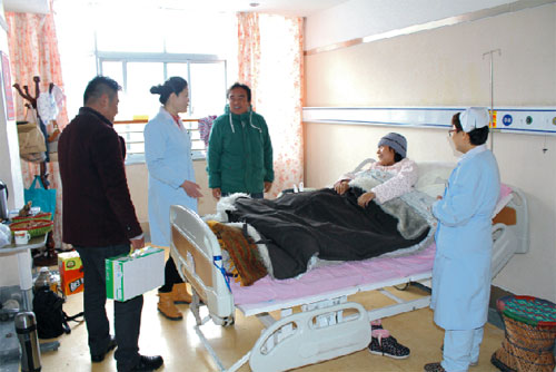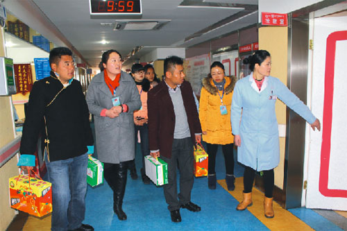 2015年2月19號,西藏阜康醫(yī)院、阜康醫(yī)院婦產(chǎn)兒童分院、阜康醫(yī)院心腦血管分院及阜康(國際)健康體檢中心在院領(lǐng)導的帶領(lǐng)下,去慰問不能出院和家人團聚的患者。醫(yī)院為所有住院患者送上了一份新鮮的水果禮盒及一箱純牛奶。