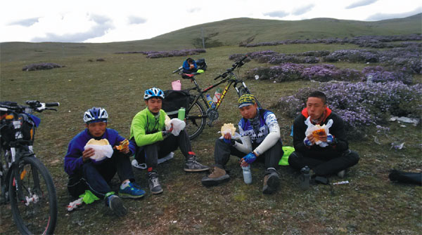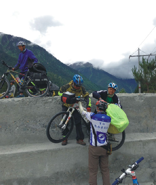 從陵園出來不久,得知那個(gè)女隊(duì)友還是堅(jiān)持騎行,于是我返回去接她,陪她一起騎行。當(dāng)我在路上碰到她的時(shí)候,她笑著問我為什么不在前面等。要多走這么一段路。我說我害怕孤單所以找你陪我一起,她感動(dòng)得什么也沒說。這一天我們互相幫助通過了一段好幾公里的落石區(qū)。