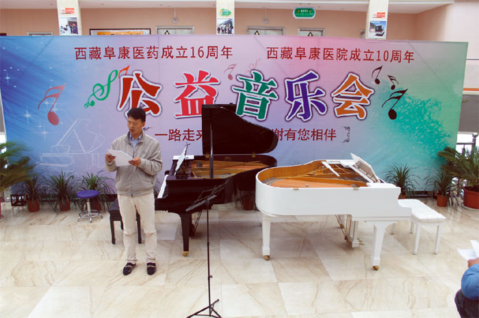 為了慶祝阜康醫(yī)藥發(fā)展有限公司成立十六周年,阜康醫(yī)院成立十周年,2015年6月21日至23日,西藏阜康集團(tuán)公益音樂(lè)會(huì)在西藏阜康(國(guó)際)健康體檢中心、和香格里拉大酒店成功舉辦,本次音樂(lè)會(huì)邀請(qǐng)到了國(guó)外友人廣瀨清隆先生及邊天、董樂(lè)晨、周于蒨四位音樂(lè)家來(lái)到西藏為大家公益演出,參加音樂(lè)會(huì)的還有著名網(wǎng)絡(luò)歌手邊巴德吉,本次音樂(lè)會(huì)受到了社會(huì)各界人士的一致好評(píng)。