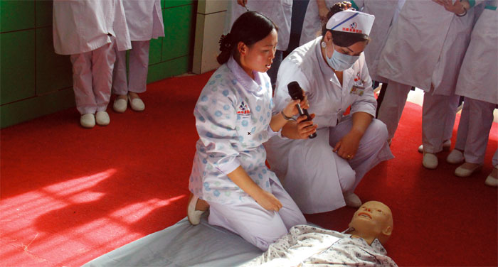 為了進(jìn)一步規(guī)范我院職工心肺復(fù)蘇技能操作,同時(shí)通過(guò)模擬院內(nèi)突發(fā)急救事件,強(qiáng)化流程培訓(xùn),提高全院人員的急救意識(shí),達(dá)到全員熟練掌握的目的, 2015年6月26日下午,我院組織舉辦心肺復(fù)蘇培訓(xùn)班。全院60多名護(hù)理人員參加了培訓(xùn)。急診科護(hù)士黃燕妮向參加培訓(xùn)的護(hù)理人員詳細(xì)講解了心肺復(fù)蘇緊急救護(hù)的基本原則、方法與步驟,通過(guò)現(xiàn)場(chǎng)模擬演練,讓參訓(xùn)人員對(duì)心肺復(fù)蘇的全過(guò)程有了更加深刻的理解。