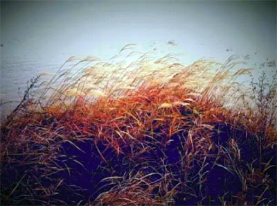 夏季的河灘,酷暑難耐,一株株蘆葦和風(fēng)而舞,葦影婆娑,勾魂兒似地招呼我們跳進(jìn)河里洗澡。小孩子喜歡玩水,是天性。說起來蘆葦還是我的“救命恩人”哩。記得我小時(shí)候?yàn)榱送嫠?,屁股可沒少挨揍??扇詴?huì)吵著哥哥帶我去,他也怕我不會(huì)游泳不安全,于是盡心地手把手教我游泳,那一回在狗刨了幾天后,我試著往深水區(qū)游,沒想到游遠(yuǎn)了點(diǎn),體力不支小腿抽筋了,嚇得只會(huì)大叫。后來經(jīng)過拼命掙扎和喝了好幾口水,沒了頭頂?shù)奈胰f幸抓住了河底的一截長葦根才爬上岸來,嚇得臉色發(fā)白、嘴唇發(fā)紫,所幸人無大礙,經(jīng)過這一遭驚嚇,自此再與游水無緣,所以到現(xiàn)在仍是旱鴨子一個(gè)。雖然不敢下深水了,但炎炎烈日下,仍會(huì)一頭扎進(jìn)蘆葦茂盛的河汊里摸魚蝦、打水仗,用蘆葉折著小船、做著風(fēng)車,在蘆葦蕩里捕捉著小鳥、掏著鳥蛋,童趣無窮。