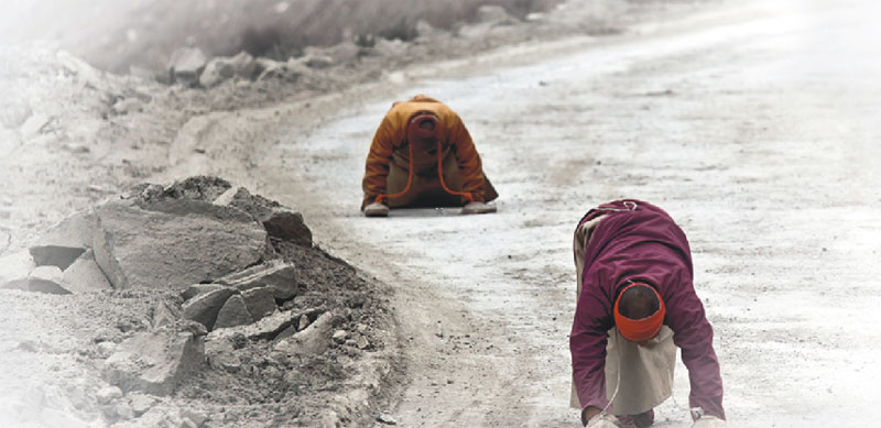 這是快樂(lè)美好的七個(gè)月,這七個(gè)月我們度過(guò)了拉薩舒適的夏季、絢麗的秋天、干燥而陽(yáng)光燦爛的冬季,領(lǐng)略了雪域高原的大美風(fēng)光和藏區(qū)神圣的宗教人文景觀。五彩的經(jīng)幡在湛藍(lán)的天空下飄揚(yáng)、清澈見(jiàn)底的高山湖泊在明媚的陽(yáng)光下泛著七彩的波光,高聳入云的雪山讓人仰望;喇嘛紅衣、匍匐在朝圣路上的信徒,在西藏這片熱土上屹立著堅(jiān)定的信仰。我不懂他們,我只是靜靜看著他們,在目光相遇的時(shí)候,給一個(gè)微笑,我便得到了發(fā)自心底的快樂(lè)、滿足和信任。在他們面前,一切都變得簡(jiǎn)單、虔誠(chéng)、付出也是一種快樂(lè)。認(rèn)識(shí)了車隊(duì)的巴次,知道了巴次的一些故事,留心著他的言行,我知道了一個(gè)普普通通的藏族青年,有著佛一樣的慈悲心,他就那樣付出著、快樂(lè)著……我被感動(dòng)著,感染著。