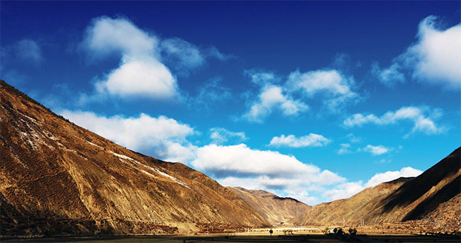 西藏也是一個(gè)美麗神奇的地方,這里有規(guī)模宏大的布達(dá)拉宮,神奇的雪山,遼闊的草原,寧?kù)o的湖泊,湛藍(lán)的天空,潔白的云彩,巍峨的喜馬拉雅山,雄偉的珠穆朗瑪峰,神圣的岡底斯山,奔騰的雅魯藏布江……這里有著無與倫比的美,黝黑的大山彰顯著西藏特有的包容和豪邁,當(dāng)你走近他,你會(huì)感受到就像巨大的腕臂將你擁入懷中,讓你體會(huì)到他的寬廣和容納。你也可以手捧一汪清澈的湖水,伏面而洗,去感受那份圣潔,去體味那份圣潔給你的凈化。當(dāng)然你也可以來到藏族同胞家中,去享受那特有的熱情和獨(dú)有的待客方式,去接受主人潔白哈達(dá)的對(duì)遠(yuǎn)方朋友的祝愿,品品女主人親手為你斟滿的散發(fā)著濃郁奶香味的酥油茶和爽醇的青稞酒,再向天空拋灑男主人遞過來的“切瑪”,相互道一聲“扎西德勒”,然后和主人嗑出滿屋的歡聲笑語(yǔ)。你還可以在清晨登上山頂,去欣賞那飄動(dòng)的經(jīng)幡和裊裊炊煙裝嵌的村落,去聽聽牛羊的第一聲歡叫,去看看云霧環(huán)繞又逐漸顯現(xiàn)的山間古寺,去捋捋自己那被世俗濁染的心靈,敞開心扉地去沐浴第一縷陽(yáng)光,讓自己的心靈和靈魂接受一次圣潔的洗禮。