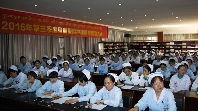 2016年9月23日下午16點整,西藏阜康醫(yī)院2016年第三季度護理質(zhì)量反饋大會,在阜康婦產(chǎn)兒童分院四樓會議室進行。阜康醫(yī)院、阜康婦產(chǎn)兒童醫(yī)院、阜康心腦血管醫(yī)院及阜康體檢中心全體護士共130人參加了本次會議,會議由敖德秀總院長主持,在會議上院長就2016年我院護理質(zhì)控工作中存在的問題進行了分析并提出對策。