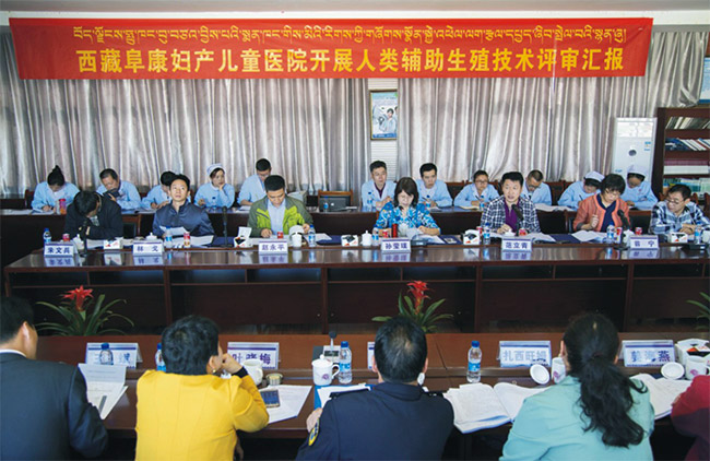 2016年8月19日上午10時(shí)許,西藏阜康婦產(chǎn)兒童醫(yī)院人類輔助生殖技術(shù)評審匯報(bào)會(huì)在西藏阜康婦產(chǎn)兒童醫(yī)院四樓會(huì)議室正式開評,孫瑩璞、范立青、趙永平、翁寧、林戈、呂杰強(qiáng)、朱文兵等7位國家衛(wèi)計(jì)委專家?guī)鞂<疑W臨我院進(jìn)行評審。扎西旺姆、次仁、姜海燕、匡雪蓮、劉貝貝、葉曉梅、次仁白珍、遲洪濱、劉中娟等9位自治區(qū)、拉薩市衛(wèi)生計(jì)生委的領(lǐng)導(dǎo);西藏大學(xué)高原醫(yī)學(xué)研究中心主任、西藏阜康婦產(chǎn)兒童醫(yī)院生殖倫理委員會(huì)主任歐珠羅布;西藏阜康婦產(chǎn)兒童醫(yī)院王斌董事長、8位院領(lǐng)導(dǎo)以及我院生殖中心各相關(guān)人員等參加了本次評審匯報(bào)會(huì)。